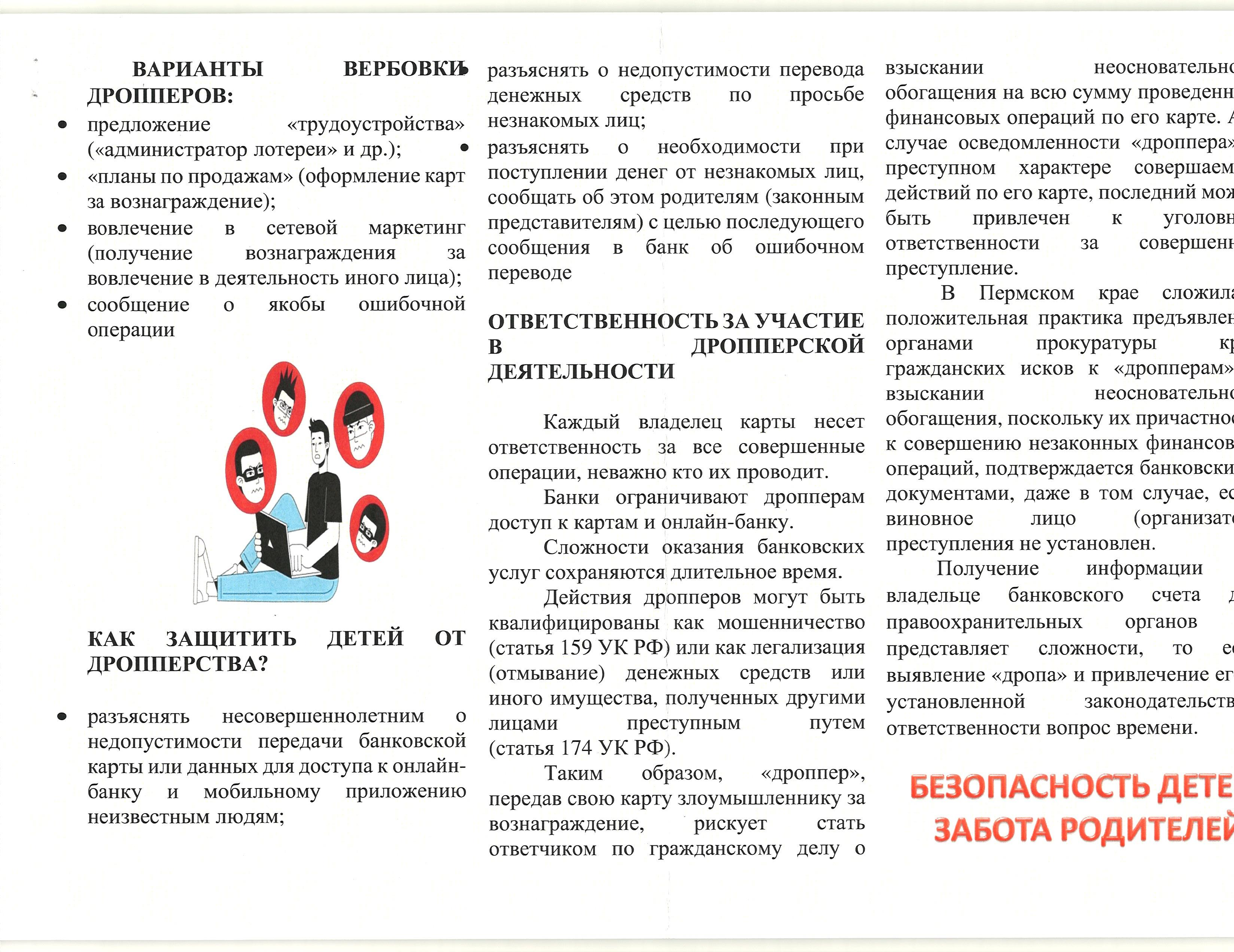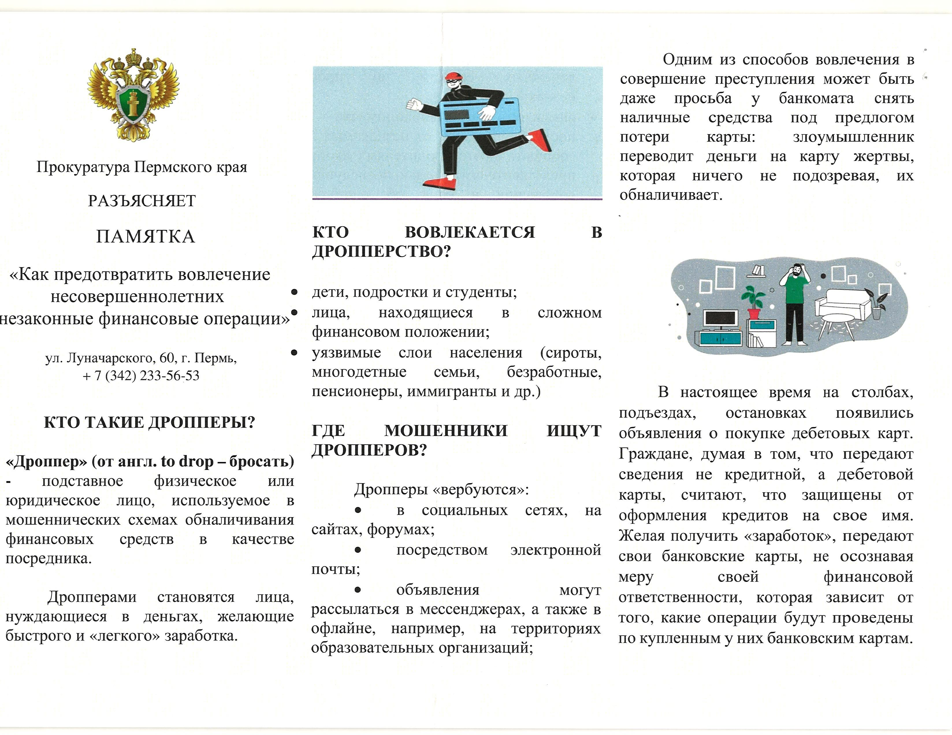 Памятка о предотвращении вовлечения несовершеннолетних в незаконные финансовые операции